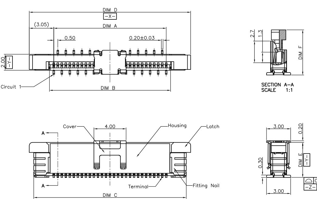 1)0.5-40p帶鎖抽屜立貼fpc連接器 材質(zhì) MATERIAL:
